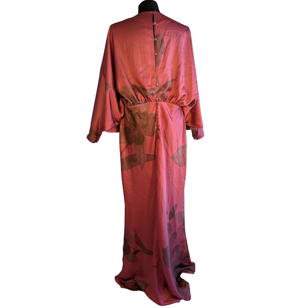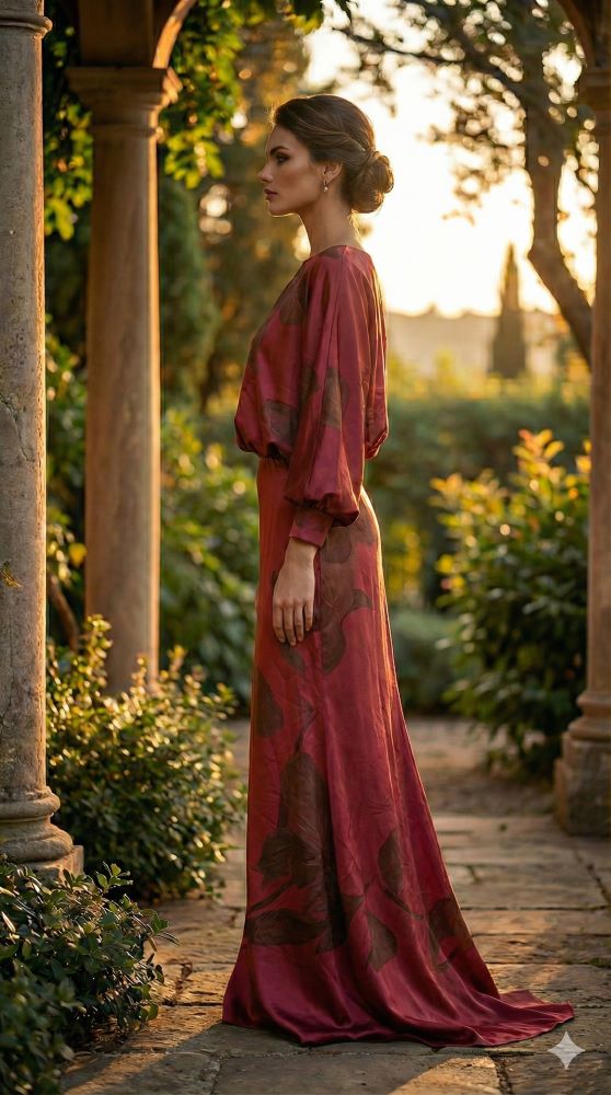 Poczuj się jak gwiazda na czerwonym dywanie. Zjawiskowa suknia wieczorowa marki ASOS DESIGN to esencja wyrafinowanego stylu i luksusu. Wykonana z lejącej satynowej wiskozy w odcieniu głębokiego burgundu, ozdobiona subtelnym, dużym motywem florystycznym. Spektakularny krój z rękawami typu batwing (nietoperz) i dopasowaną talią tworzy posągową sylwetkę, gwarantując niezapomniane wrażenie na każdej uroczystości.