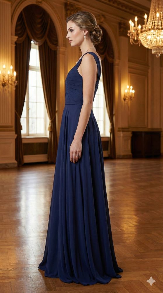 Zaprezentuj się z najwyższą klasą w kreacji od prestiżowej marki Mascara London. Ten model to kwintesencja brytyjskiego szyku, łącząca wyrafinowany krój z dbałością o najmniejszy detal krawiecki. Przód sukni zachwyca kunsztownym drapowaniem, które zbiega się w talii, optycznie wysmuklając sylwetkę i nadając jej rzeźbiarski charakter. Szerokie, miękko układające się ramiączka płynnie przechodzą w elegancki dekolt V, eksponując szyję w sposób niezwykle szlachetny. Całość wykonana z lekkiej, płynącej tkaniny najwyższej jakości, która gwarantuje spektakularny ruch w tańcu.