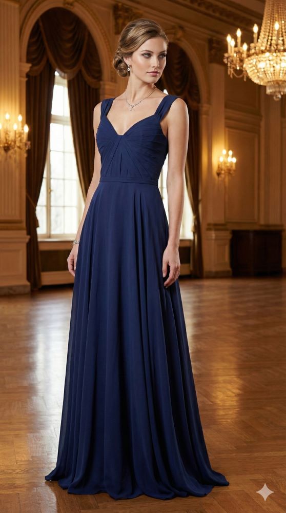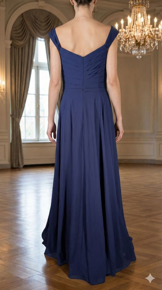 Mascara London – Granatowa Suknia Wieczorowa Drapowana