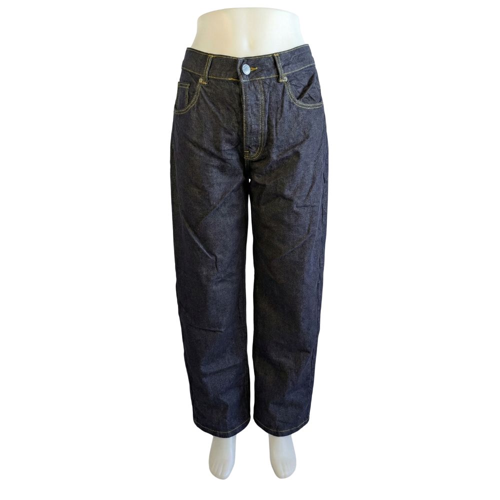 Postaw na bezkompromisowy styl z jeansami od boohooMAN. Ten model w kolorze głębokiego granatu wyróżnia się wyrazistymi, żółtymi szwami, które nadają mu surowego, autentycznego charakteru. Dzięki fasonowi typu loose fit, spodnie zapewniają maksymalną wygodę i pełną swobodę ruchów w każdej sytuacji. To idealny fundament dla nowoczesnych, miejskich stylizacji.