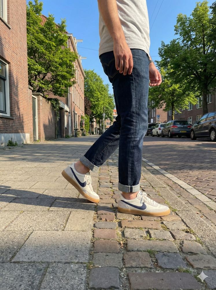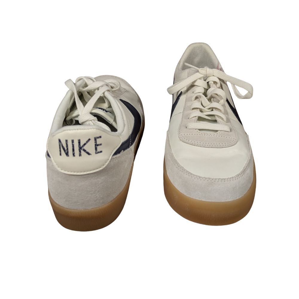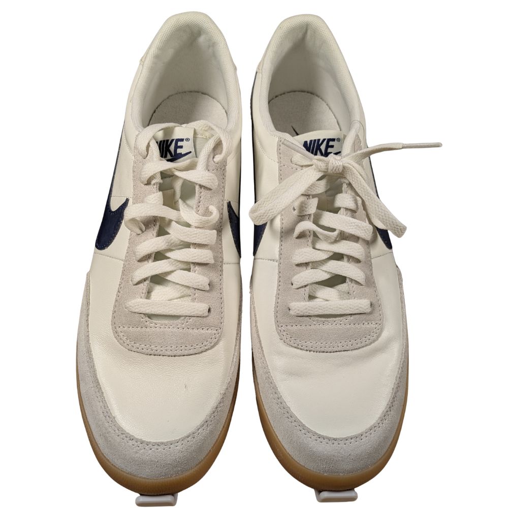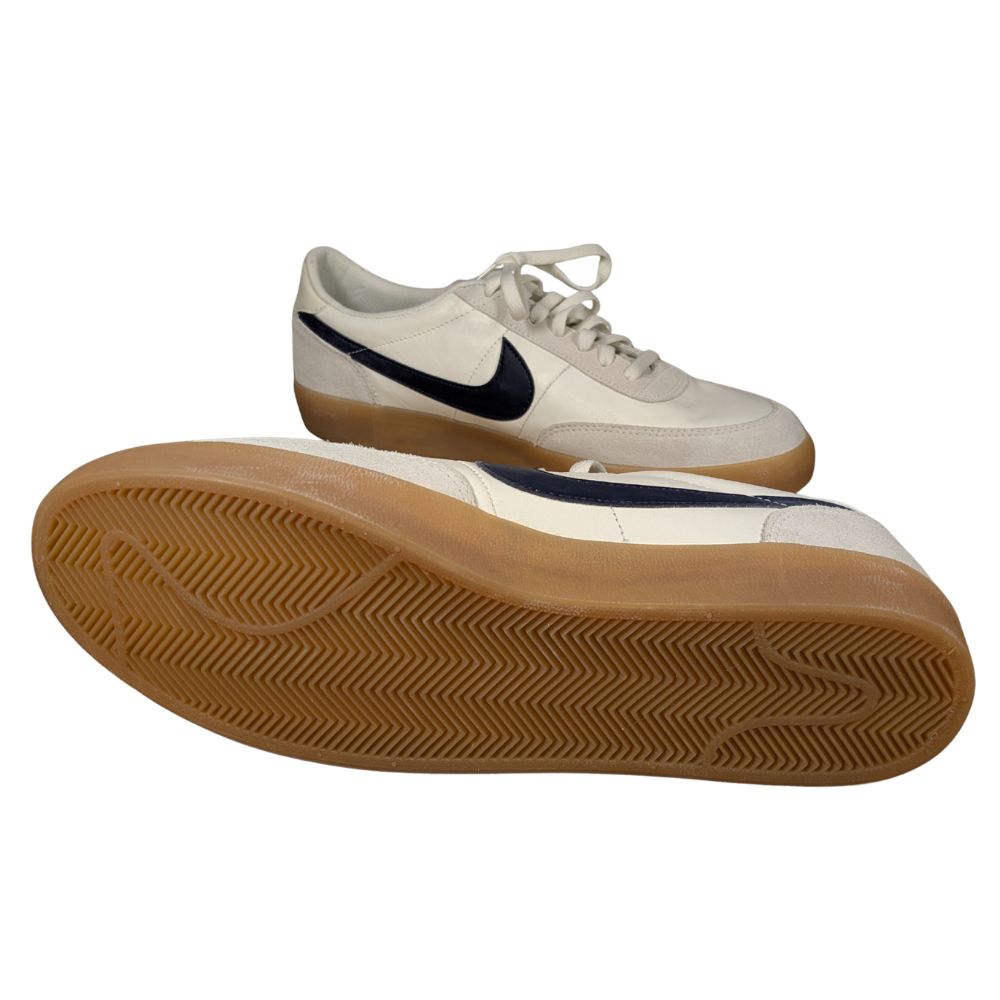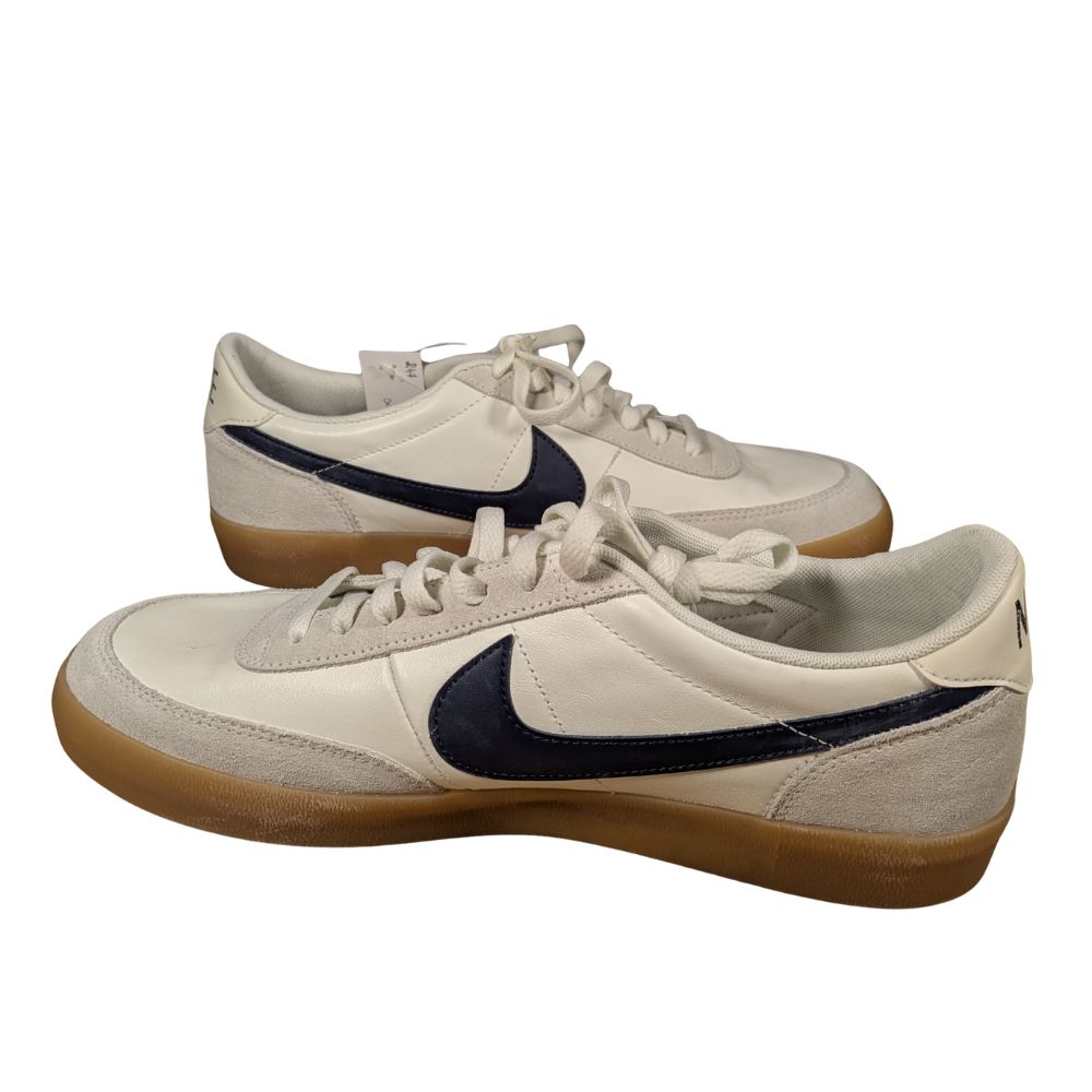 Nike Killshot 2 to model, który z kortów tenisowych przeniósł się prosto do kanonu męskiej klasyki. Nawet w dużym rozmiarze zachowuje smukłą i lekką sylwetkę. Kolorystyka "Sail" (złamana biel) w połączeniu z granatowym logo (Midnight Navy) oraz charakterystyczną miodową podeszwą nadaje butom szlachetny, oldschoolowy wygląd. To absolutny "must-have", który pasuje niemal do wszystkiego – od casualowych jeansów po eleganckie chinosy.