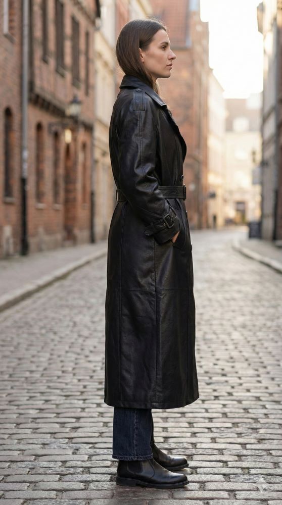 Odkryj płaszcz, który definiuje charakter. Ten model od Trendyol to połączenie ponadczasowego kroju trencza z wyrazistym, rockowym pazurem. Wykonany z wysokiej jakości skóry ekologicznej o wyraźnej, groszkowej strukturze, płaszcz prezentuje się niezwykle szlachetnie, jest odporny na zagniecenia i miękko układa się na sylwetce. Wyjątkowym detalem jest klamra paska ręcznie obszyta tym samym materiałem, co podkreśla dbałość o detale.
