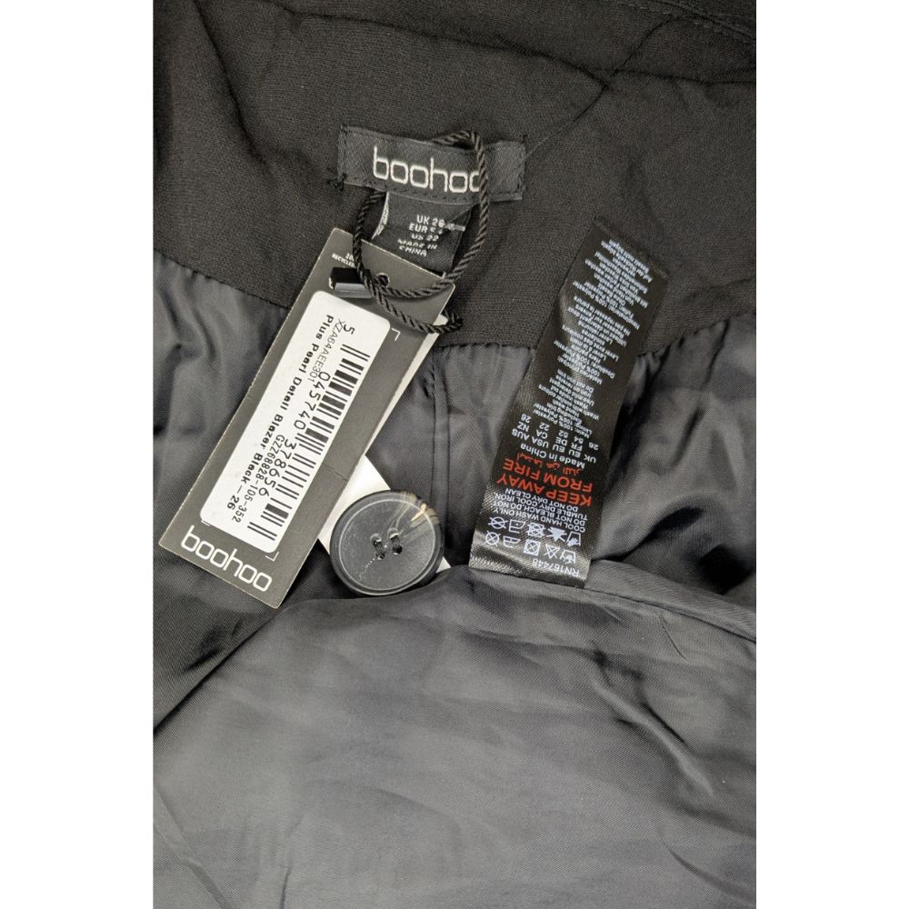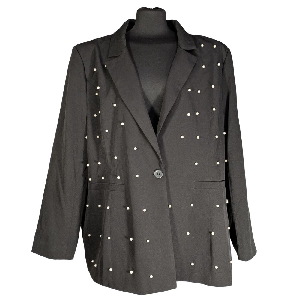 Żakiet marki Boohoo z linii Plus Size to połączenie wygody i wyrafinowanego stylu. Głęboka czerń materiału stanowi idealne tło dla naszywanych, białych pereł, które nadają całości biżuteryjnego blasku. Model ten charakteryzuje się przedłużonym krojem, który pięknie wysmukla sylwetkę i dodaje pewności siebie w każdej sytuacji.