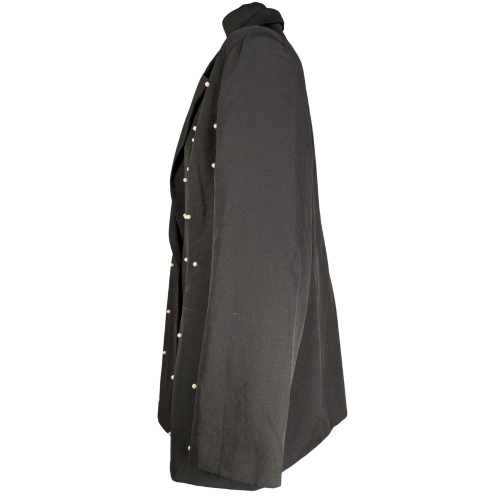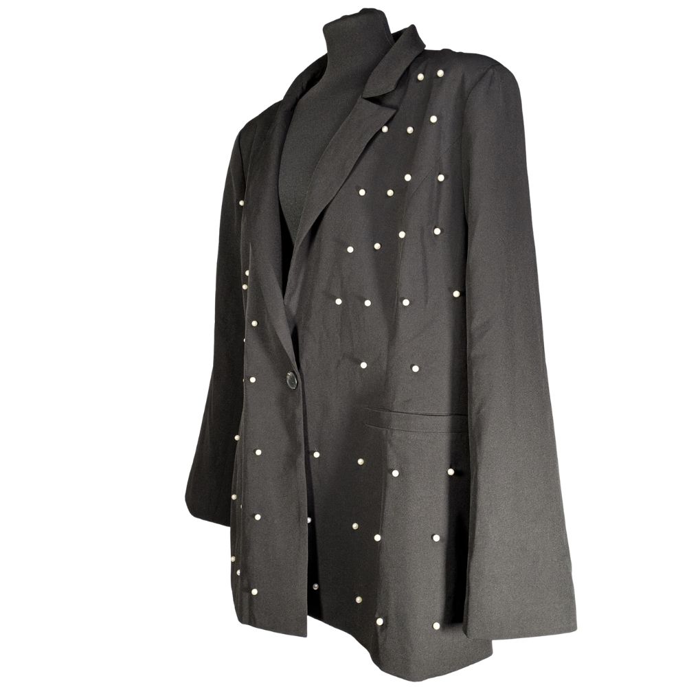 Żakiet posiada klasyczne klapy kołnierza oraz zapięcie na jeden centralny guzik. Perły zostały rozmieszczone na przednich panelach, tworząc efektowną konstelację blasku. Gładkie plecy oraz długie rękawy zapewniają minimalistyczną równowagę. Jest to doskonała propozycja na wesela, uroczyste kolacje lub jako element eleganckiego looku do pracy.