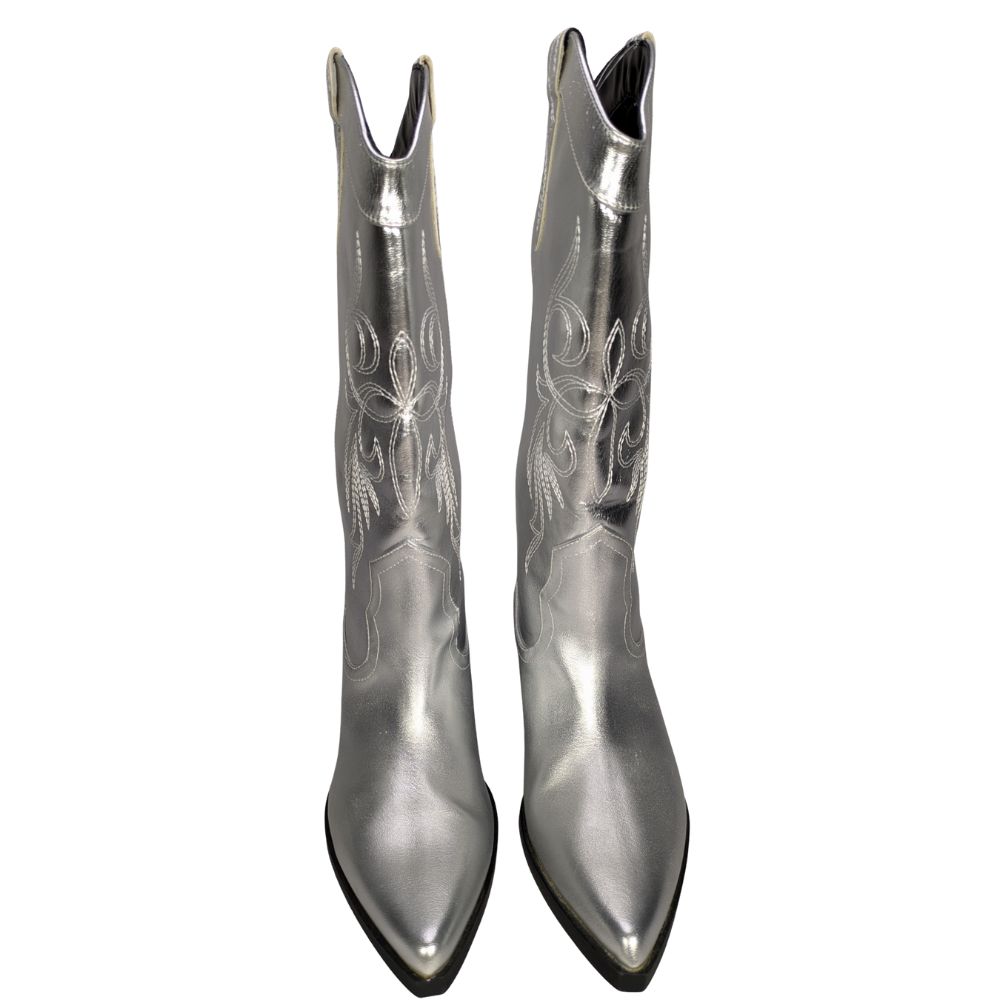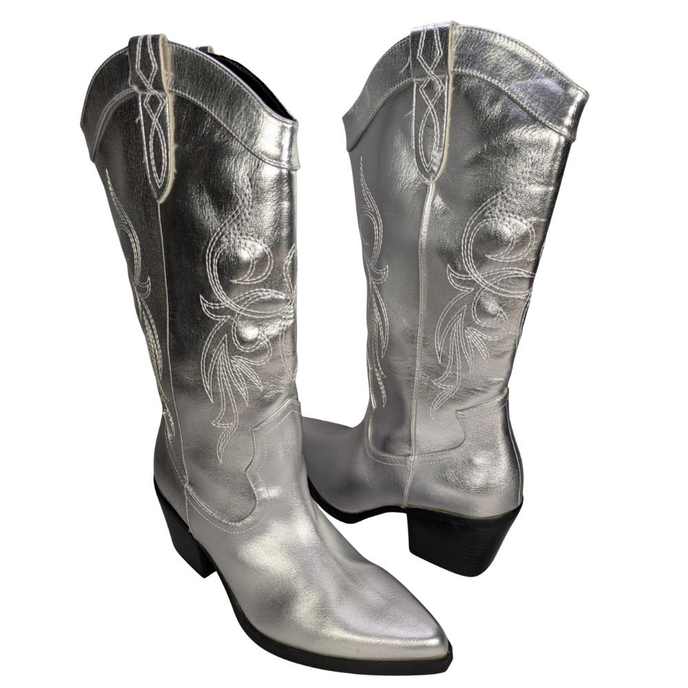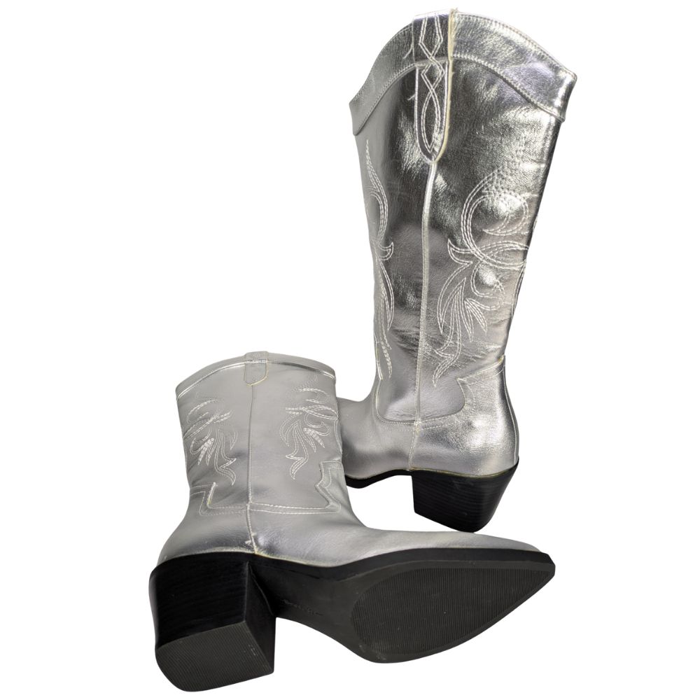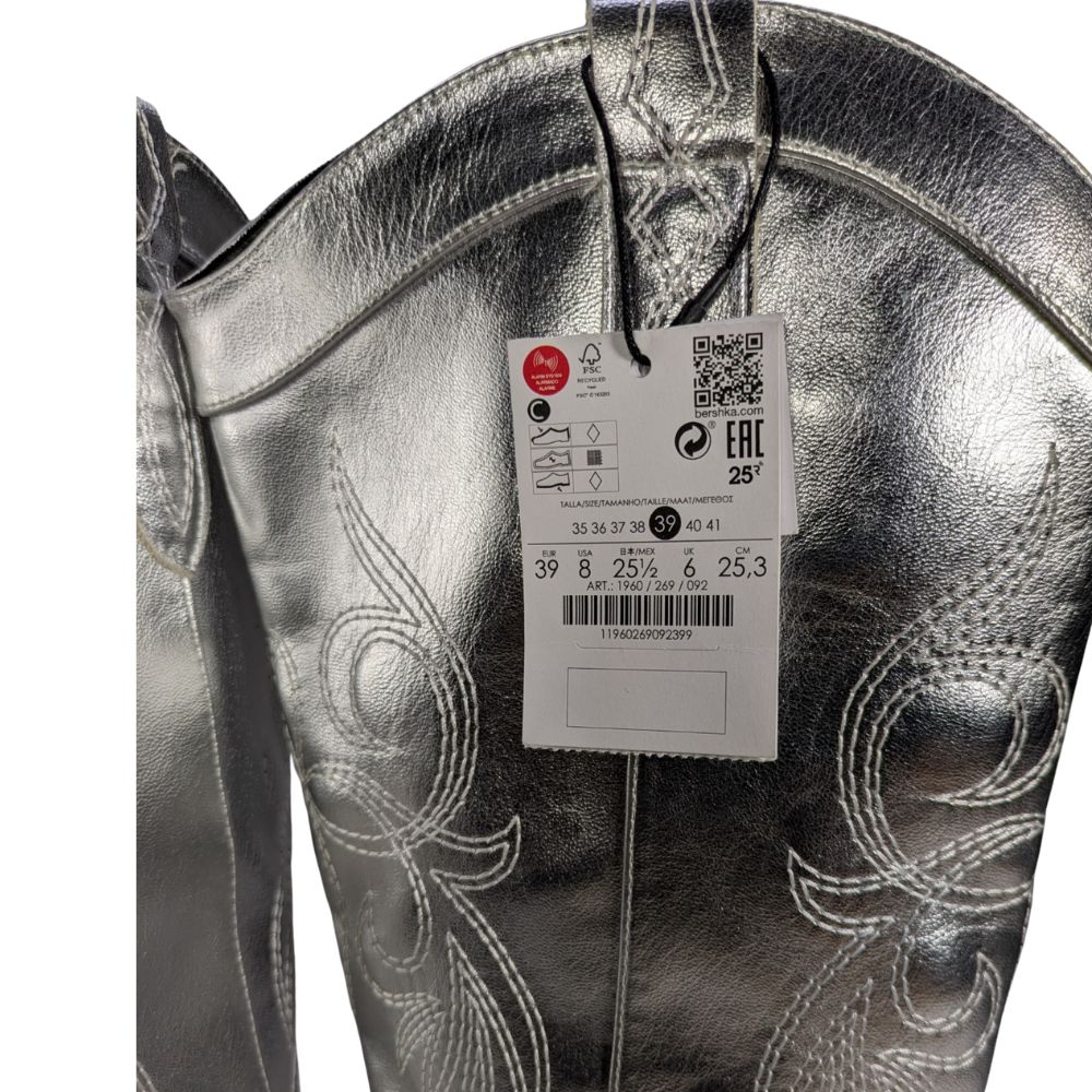 Identyfikacja produktu: Bershka Metallic Silver Cowboy Boots, Art. No.: 1960/269/092, Rozmiar: EU 39 / 26 cm.