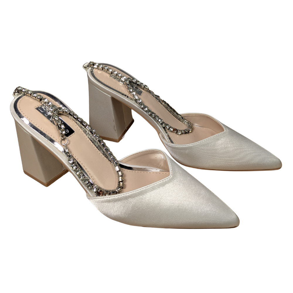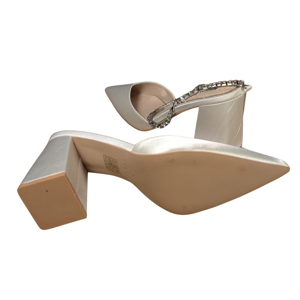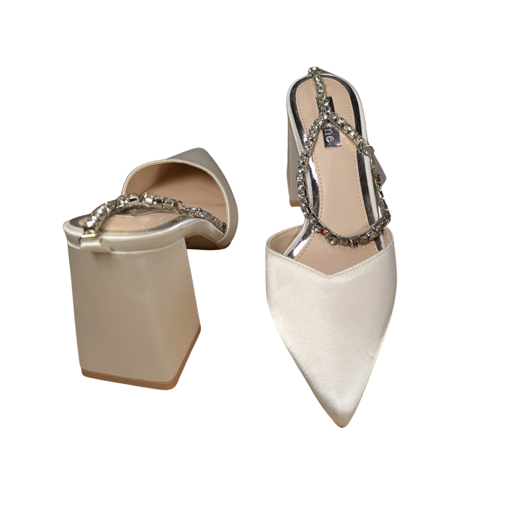 Model Nella od Be Mine to połączenie klasycznej bieli z luksusowym wykończeniem. Biżuteryjne detale i satynowa tekstura tworzą obuwie, które dopełni Twoją wymarzoną stylizację ślubną, gwarantując pewność każdego kroku.