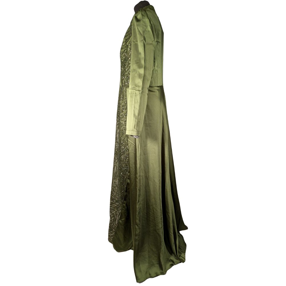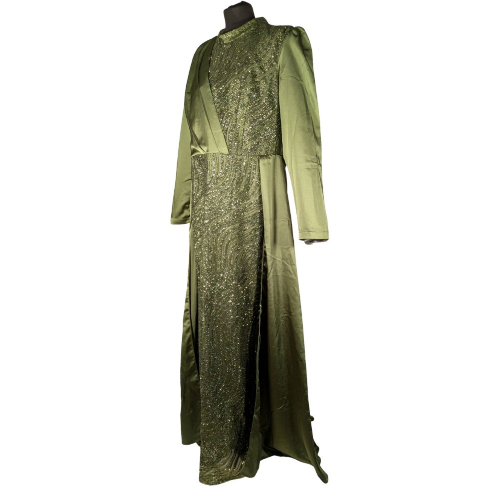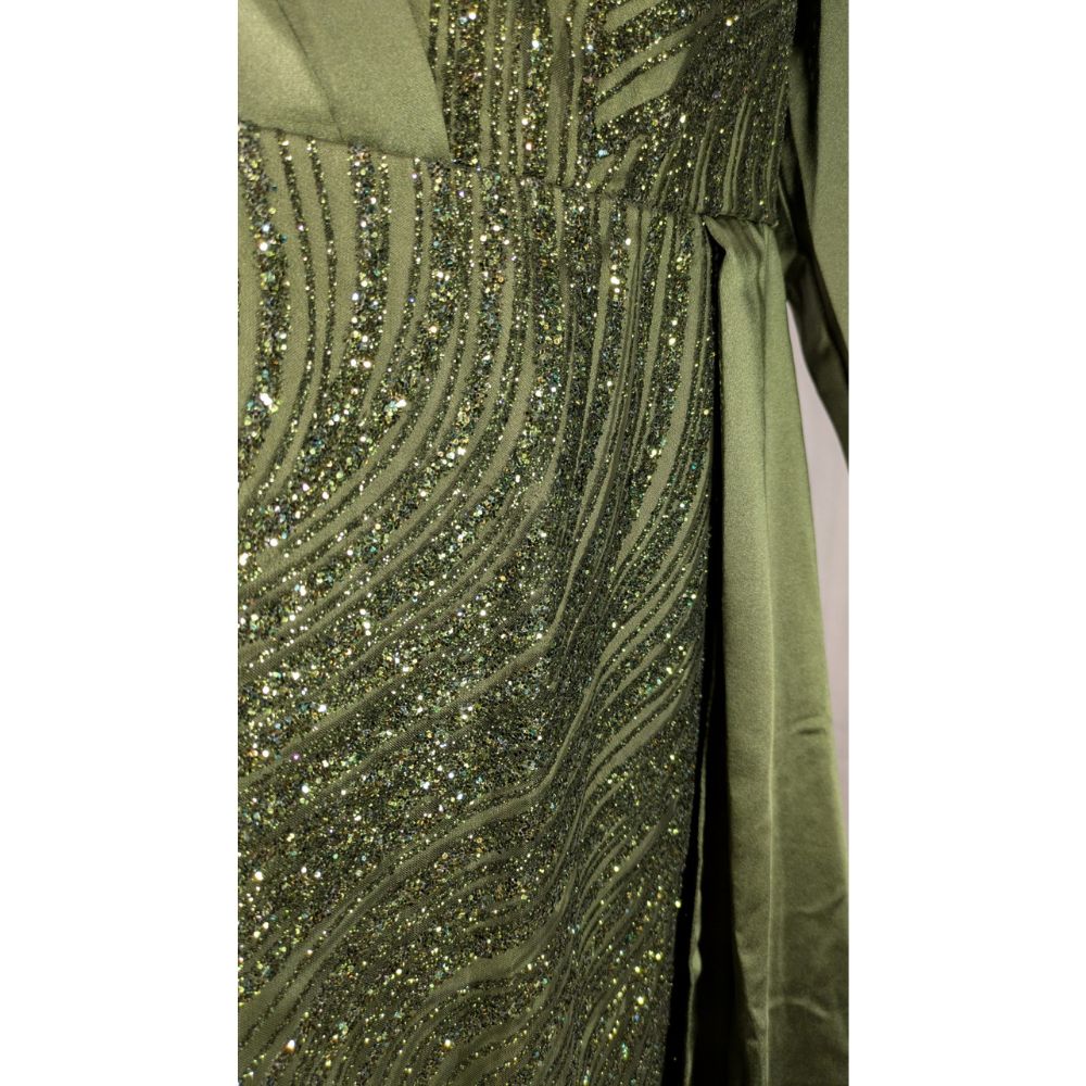 MİHİR İstanbul – Oliwkowa Suknia Wieczorowa z Brokatem 50