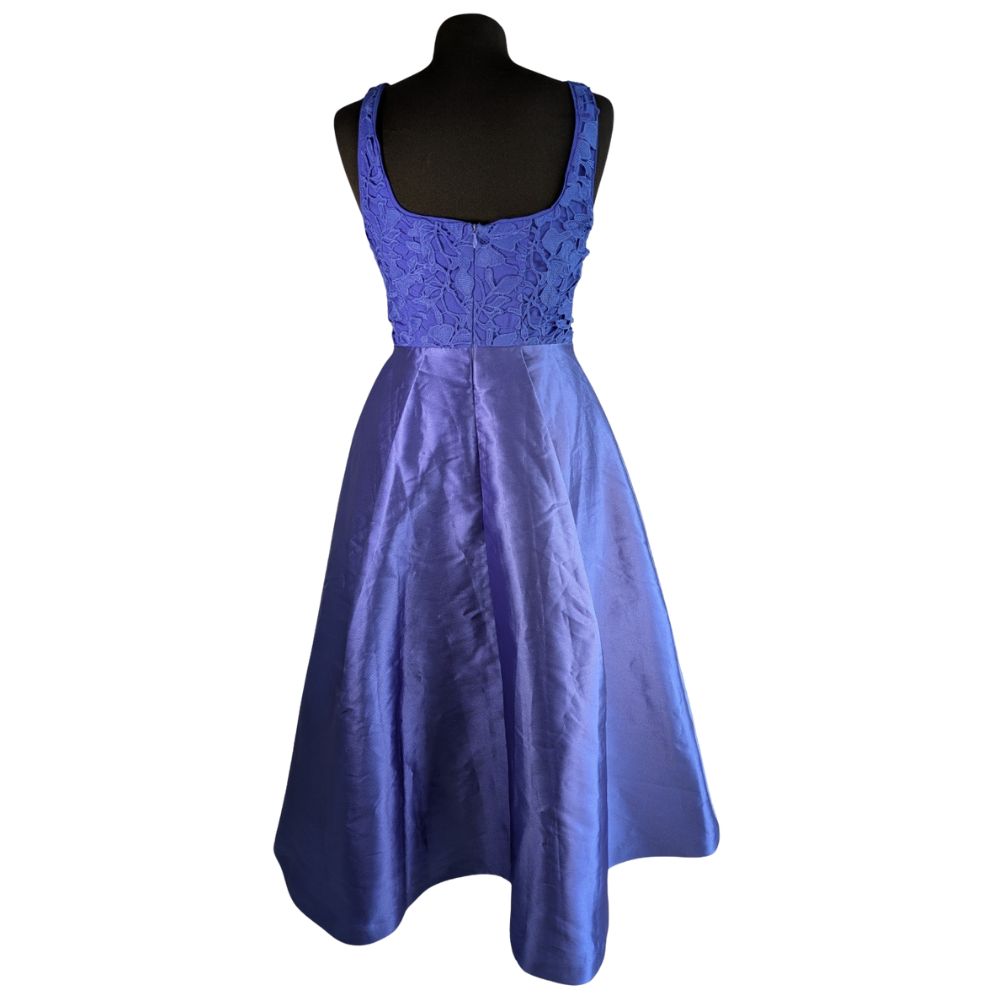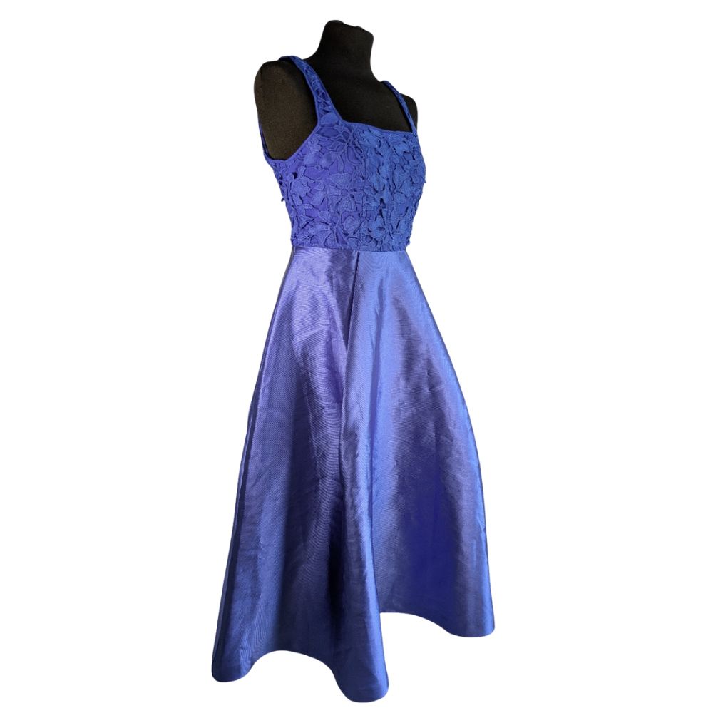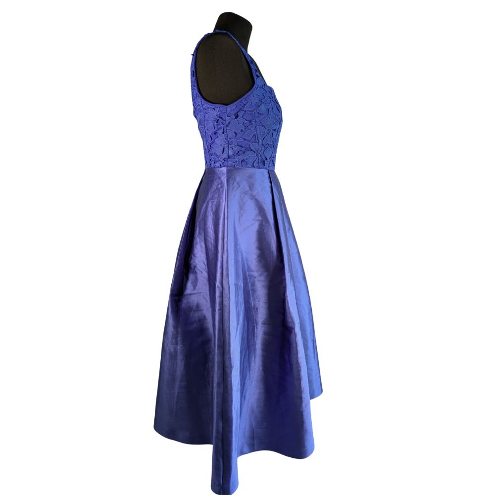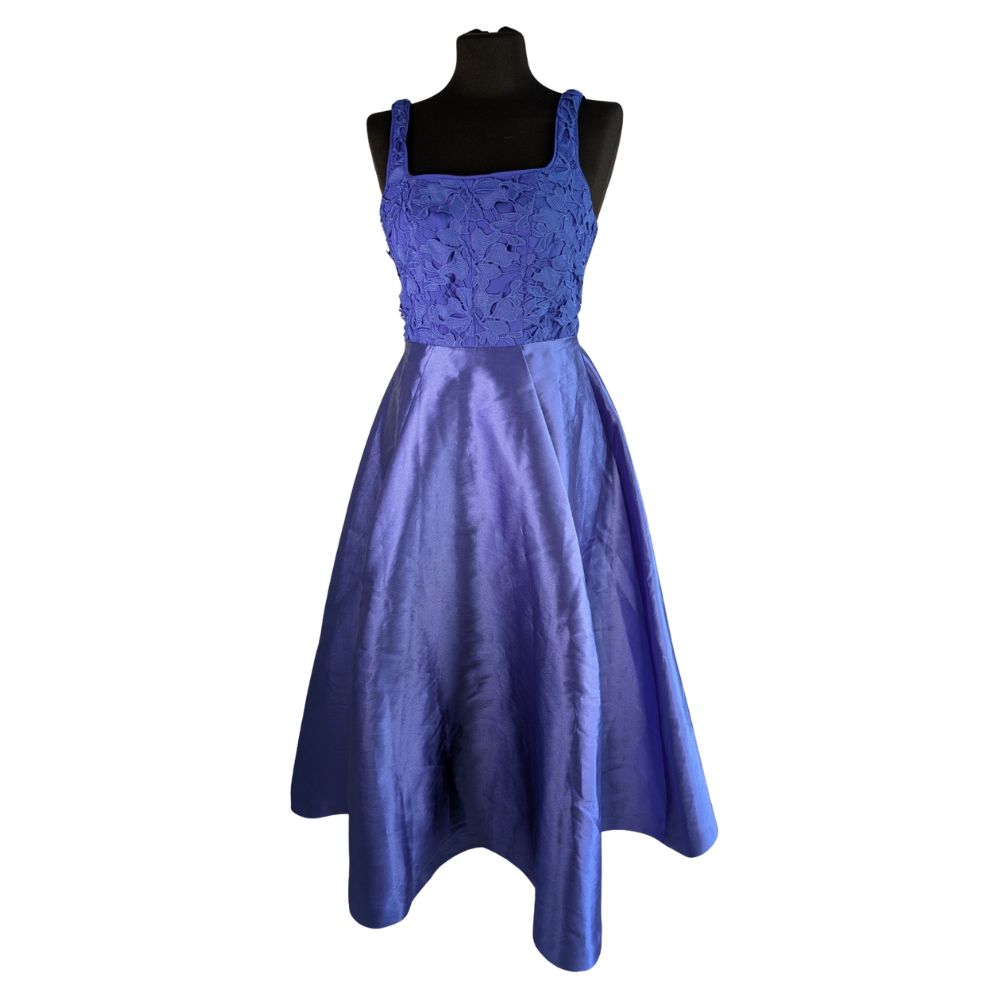 Sukienka od marki Coast to kwintesencja współczesnej elegancji. Połączenie misternej koronki i geometrycznie rozkloszowanego dołu tworzy architektoniczną sylwetkę, idealną na wesela i eleganckie przyjęcia.