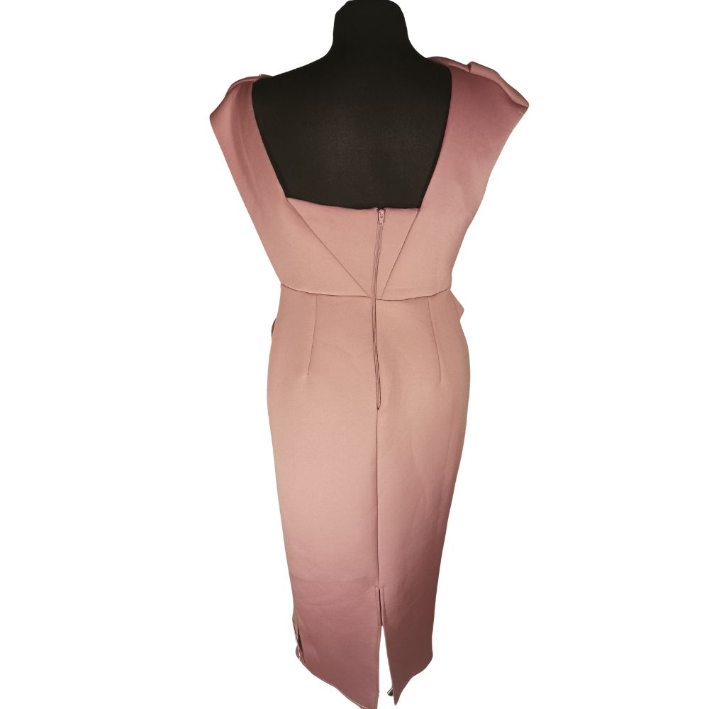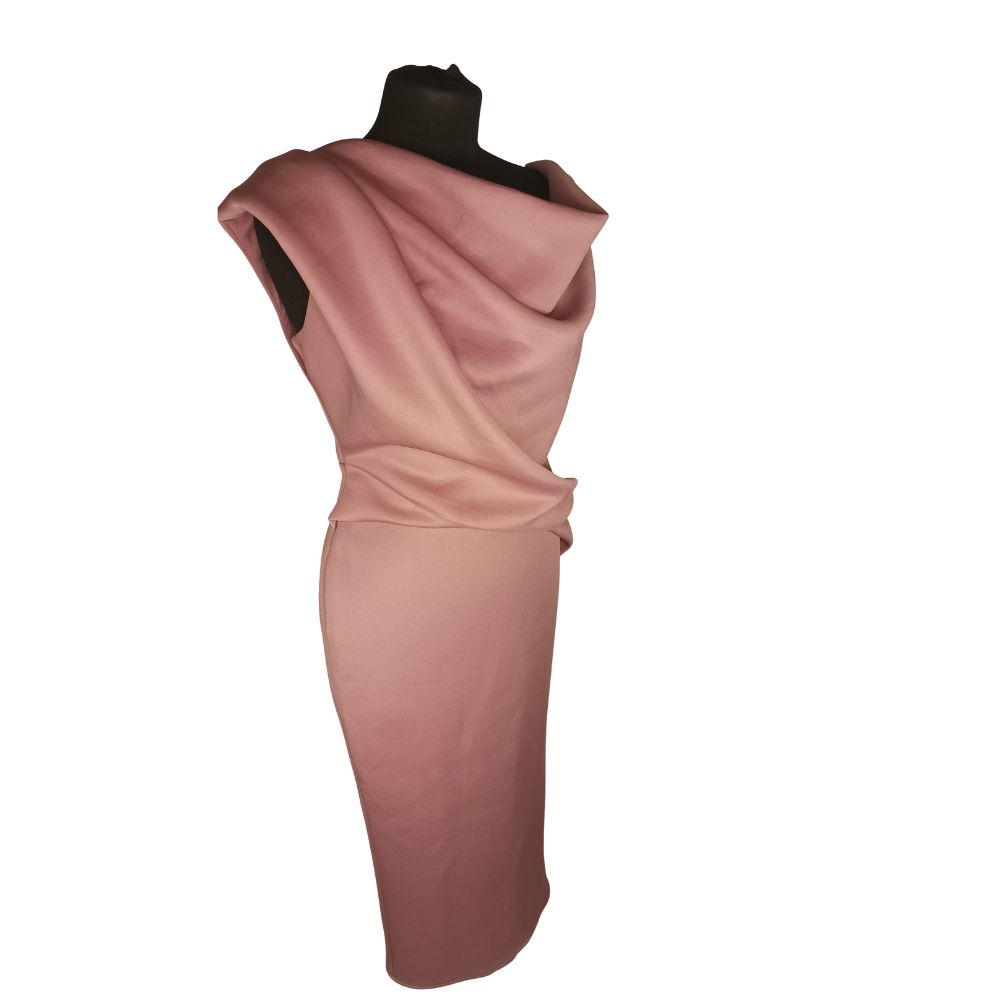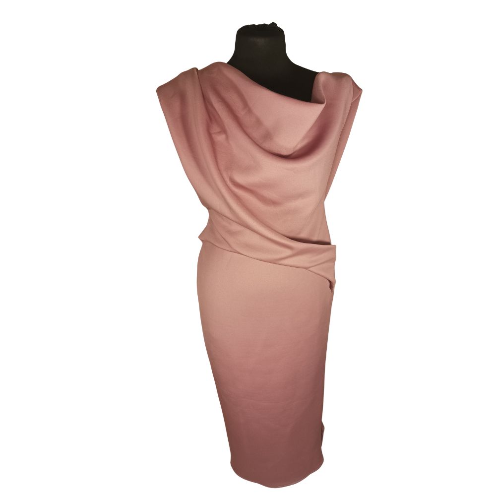 • Fason: Ołówkowa (Pencil), Midi, drapowany dekolt