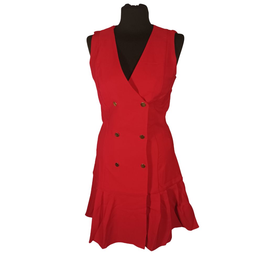 PobranieKreacja od marki Trendyol to odważne połączenie biurowej elegancji z wieczorowym pazurem. Krój inspirowany męską kamizelką, złote akcenty i kobiece plisy tworzą sukienkę pełną charakteru i pewności siebie.