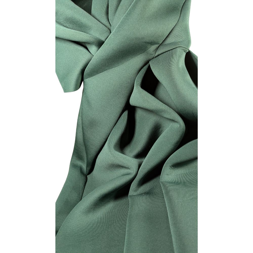Gęsta, mięsista tkanina z domieszką elastanu (tzw. nurek / scuba) doskonale trzyma formę, co pozwala na idealne ułożenie rozkloszowanego dołu z głębokimi zakładkami. Długość midi nadaje sukni niezwykłej klasy, czyniąc ją perfekcyjnym wyborem na wesela, bankiety i oficjalne przyjęcia.