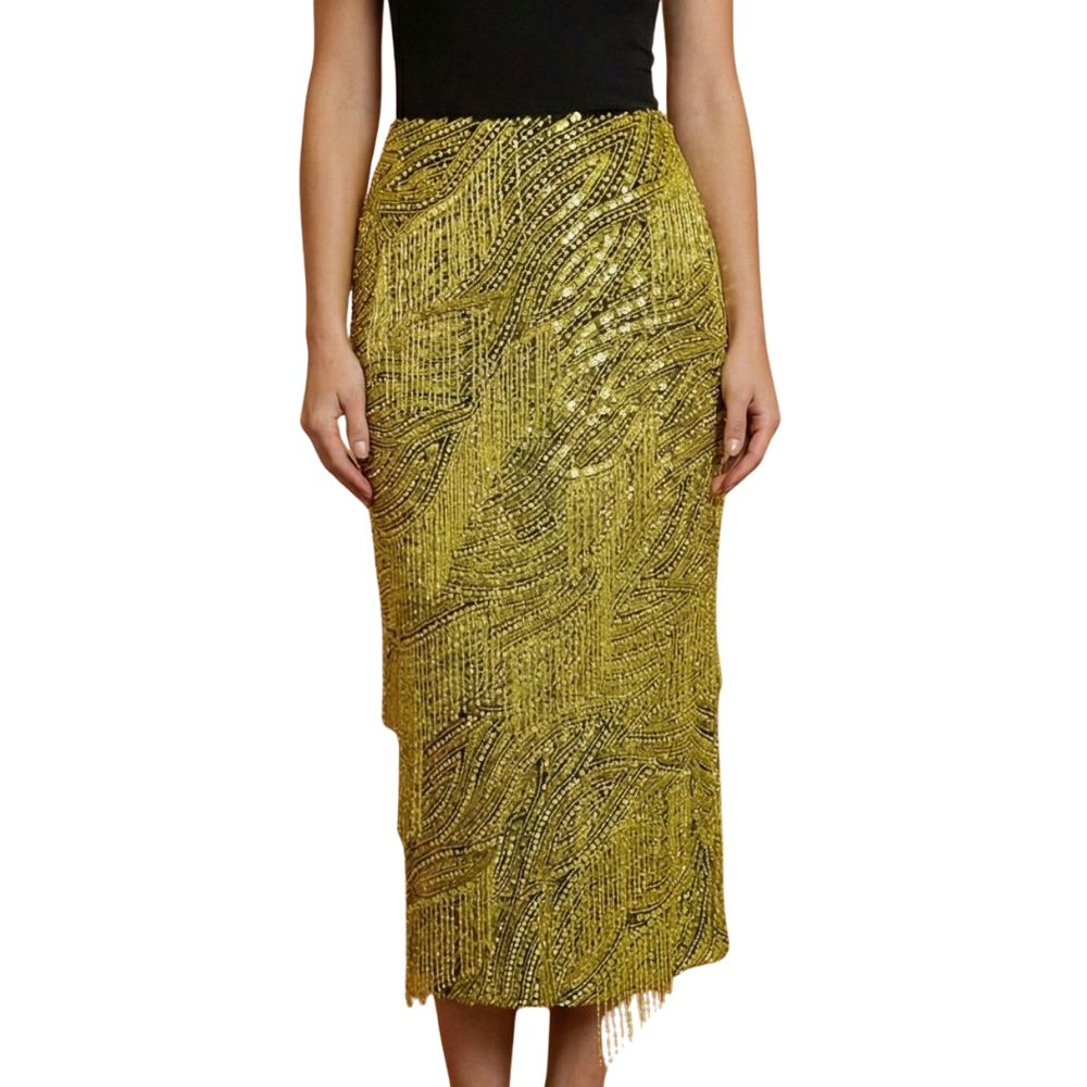 Spódnica od ASOS EDITION to dzieło sztuki krawieckiej. Połączenie tysięcy lśniących cekinów z ciężkimi, koralikowymi frędzlami tworzy kreację, która lśni przy każdym kroku.