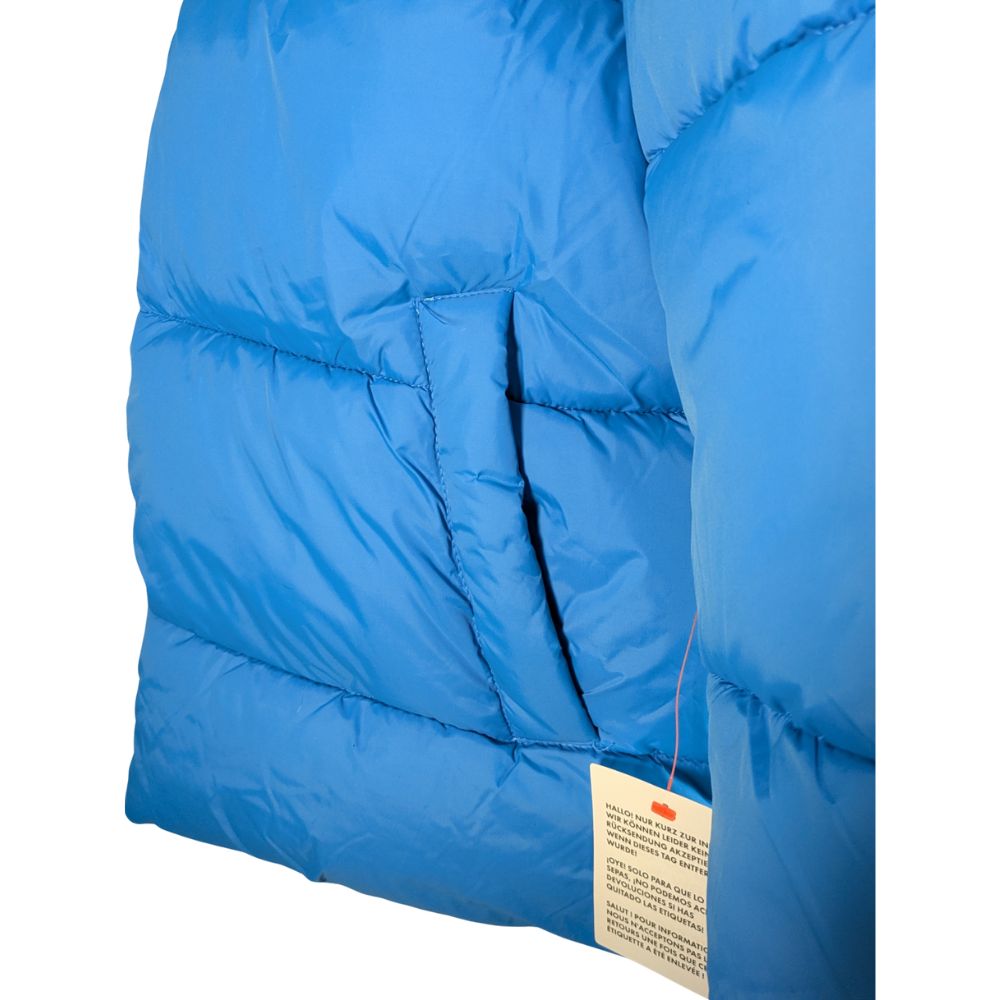 Dół modelu prezentuje klasyczny fason typu puffer z szerokim poprzecznym pikowaniem, które równomiernie rozprowadza ciepło. U dołu znajdują się praktyczne, wsuwane kieszenie boczne, idealne do ogrzania dłoni, a elastyczne wykończenia rękawów dodatkowo uszczelniają konstrukcję przed zimnem.