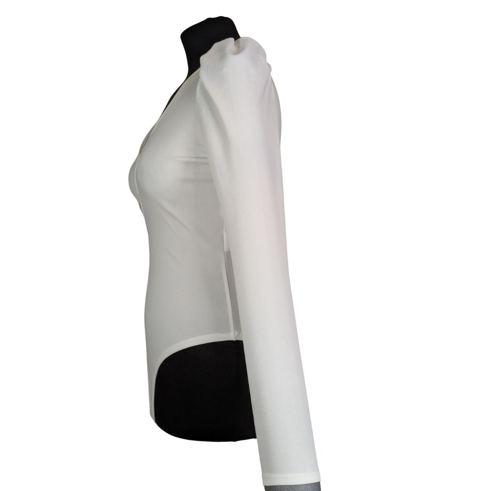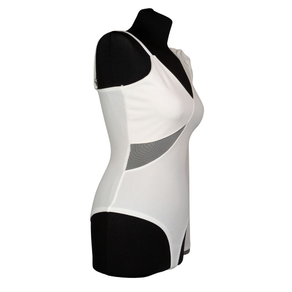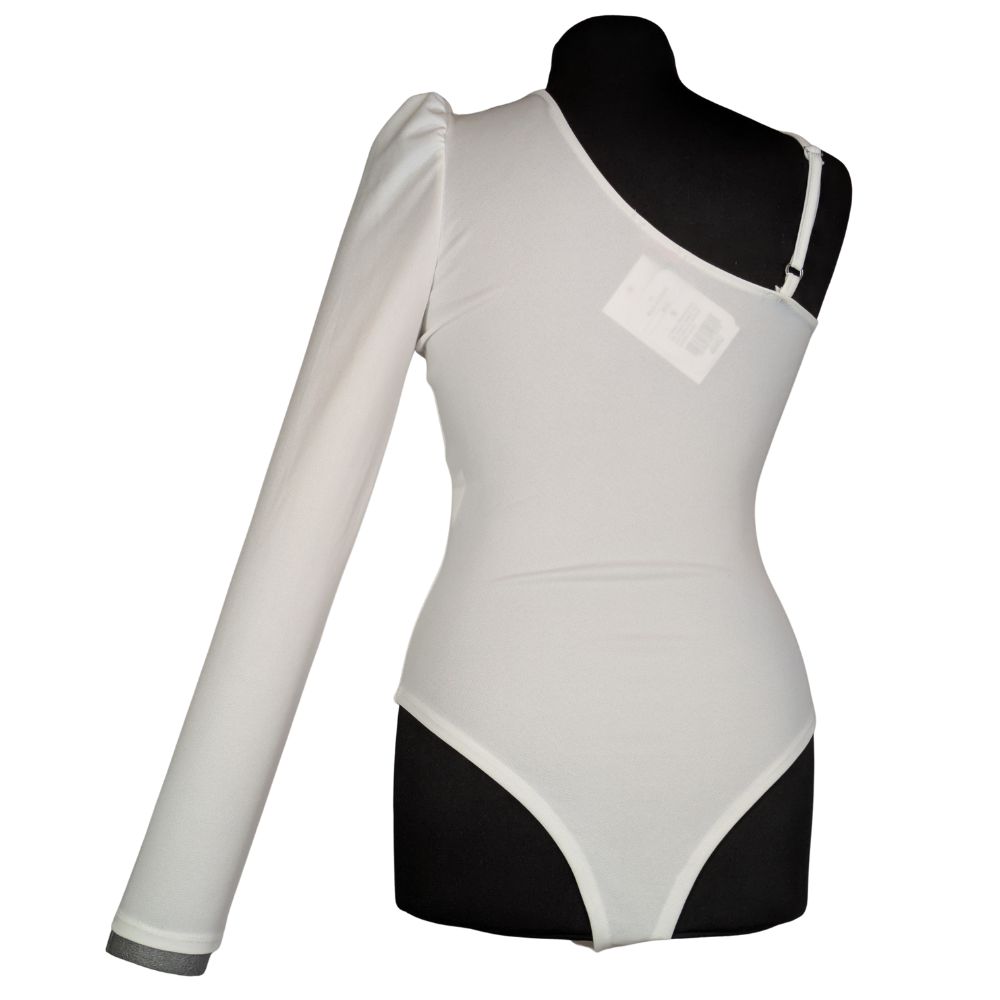 Body wykonano z gładkiego, układającego się do ciała materiału. Zastosowano tutaj solidne, dolne zapięcie na rzędy haftek (podobne do bieliźnianych), co pozwala na precyzyjne dopasowanie długości i zapewnia maksymalny komfort podczas noszenia.
