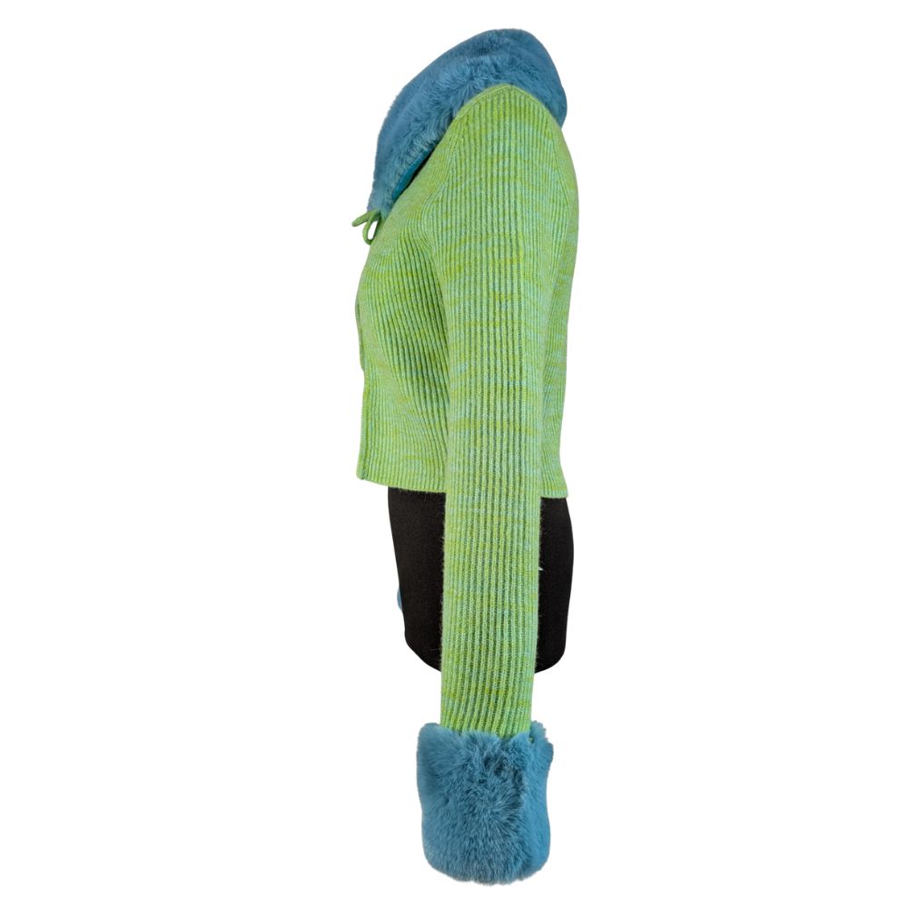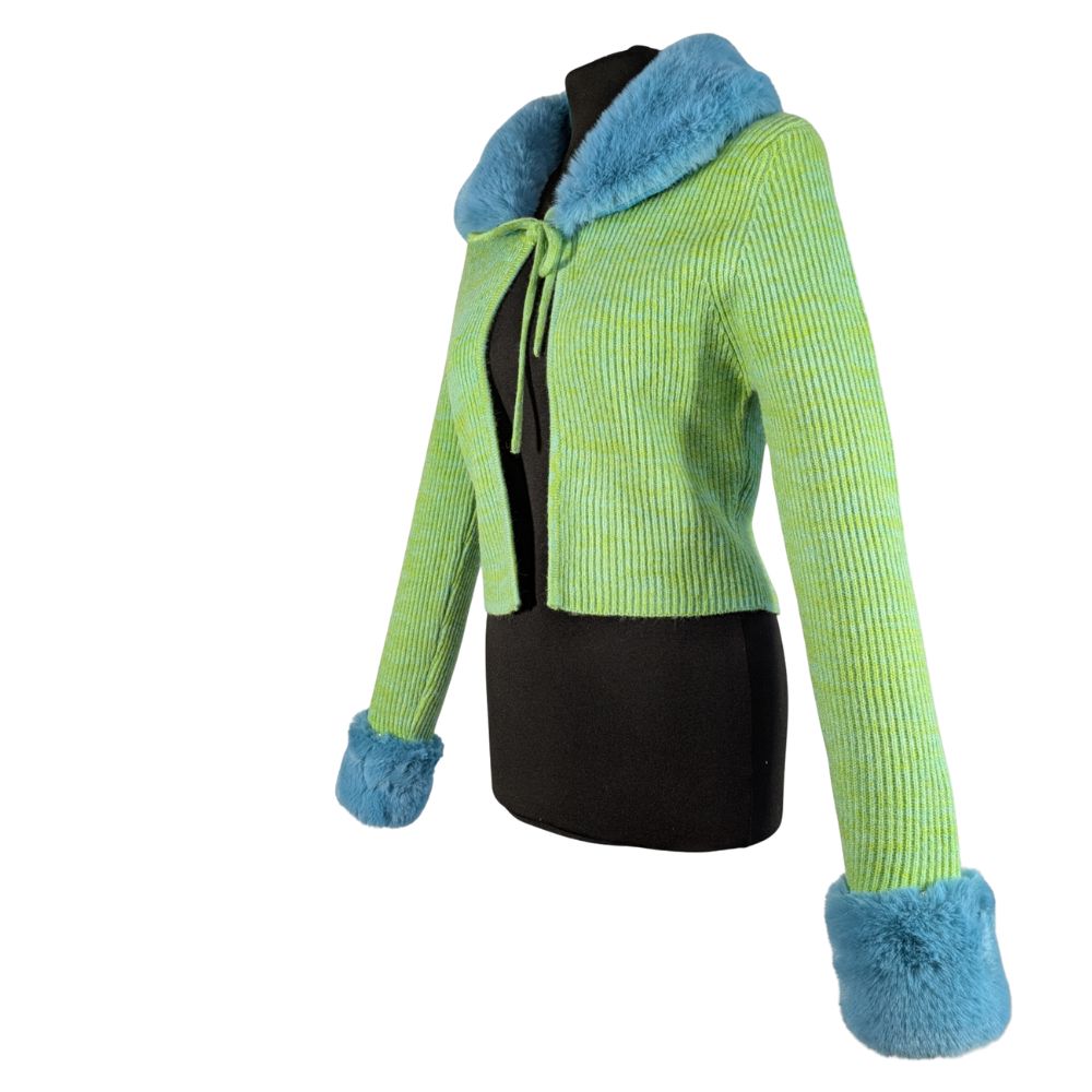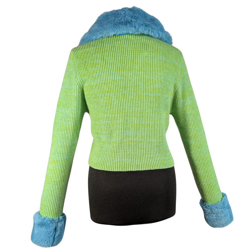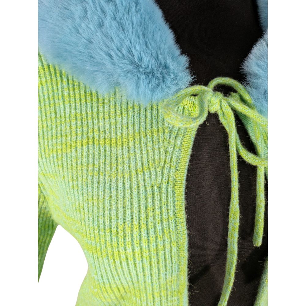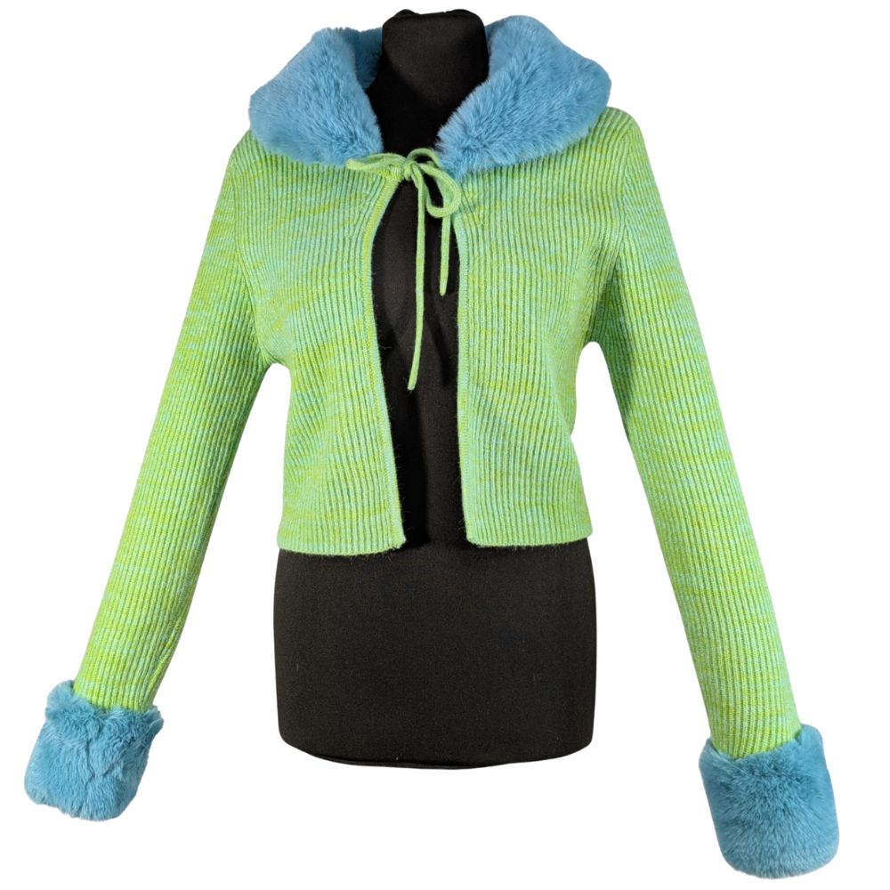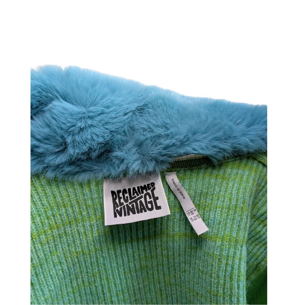 Zabawny, odważny i pełen charakteru. Kardigan z kolekcji Reclaimed Vintage czerpie garściami z estetyki Y2K, oferując unikalne połączenie neonowej dzianiny z miękkim, sztucznym futerkiem.
