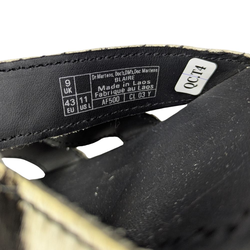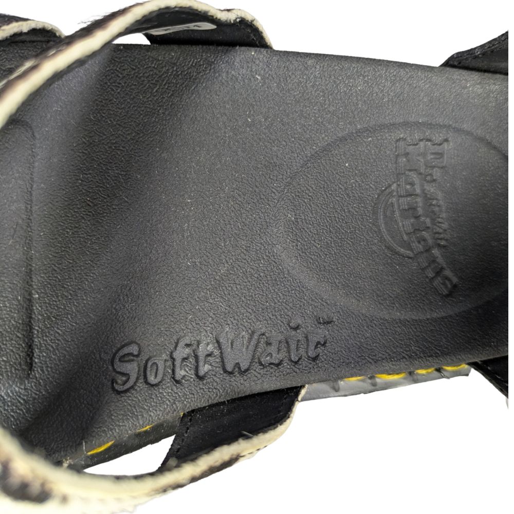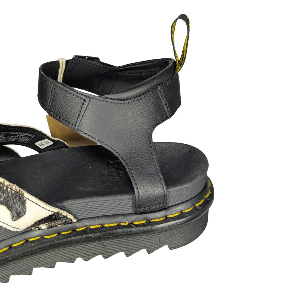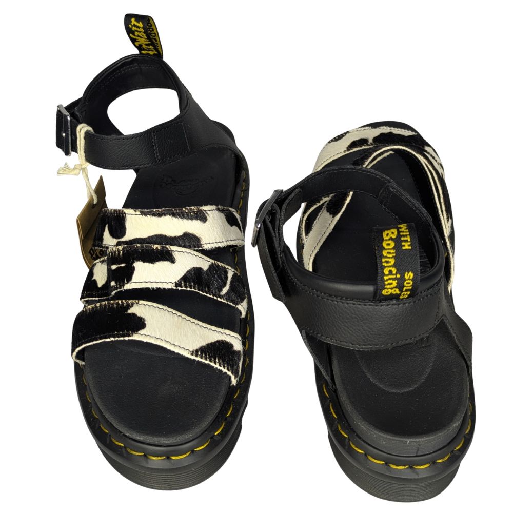 PobranieZabierz ze sobą DNA marki Dr. Martens w najcieplejsze dni roku. Model Blaire na platformie łączy ikoniczną trwałość i kultową żółtą nić z bezkompromisowym, przyciągającym spojrzenia motywem w krowie łaty.