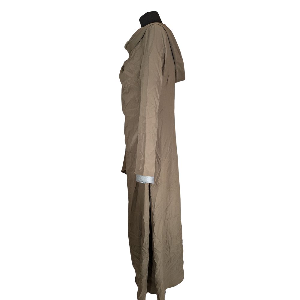 Zastosowanie wysokiej jakości elastycznej dzianiny sprawia, że sukienka idealnie układa się na sylwetce (szerokość w biuście 52 cm), jednocześnie zapewniając swobodę ruchów. Długość maxi (136 cm) w połączeniu z długim rękawem tworzy kompletną i wyważoną propozycję na specjalne okazje.