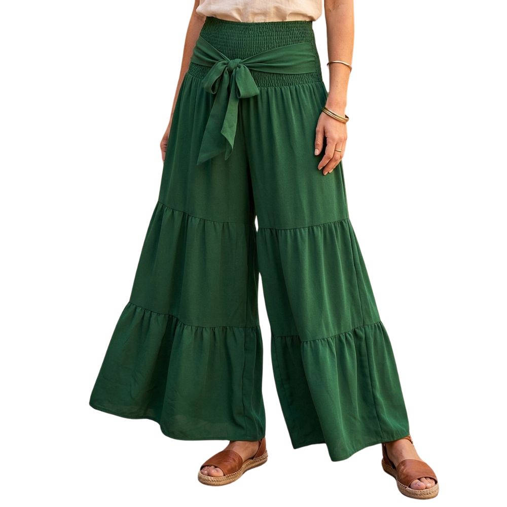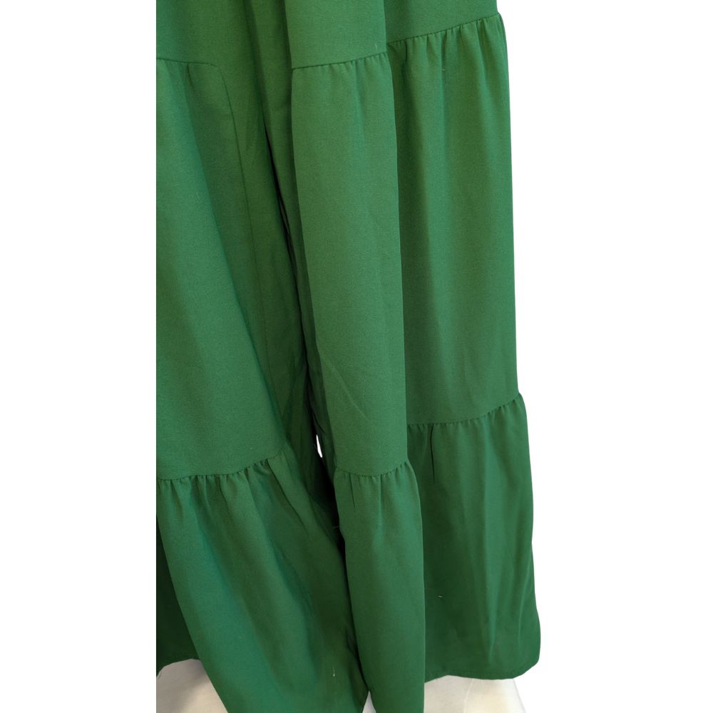 PobraniePoczuj swobodę w spodniach marki SHEIN. Intensywna zieleń połączona z kaskadą falban tworzy kreację, która przyciąga wzrok i nadaje sylwetce wyjątkowej dynamiki.