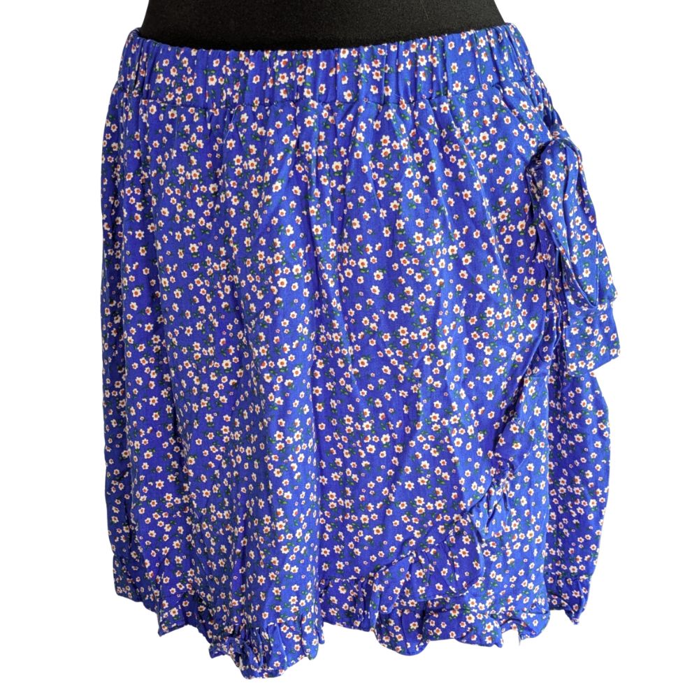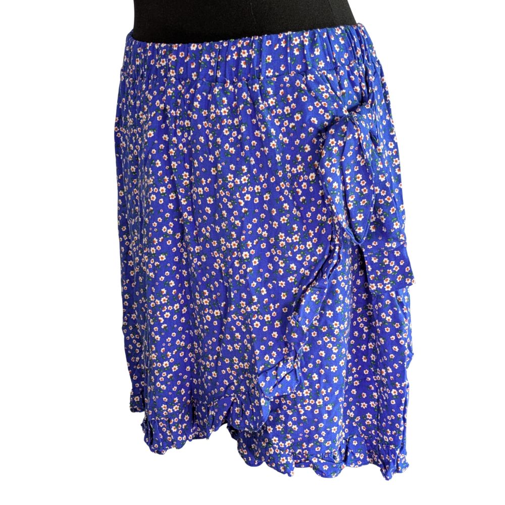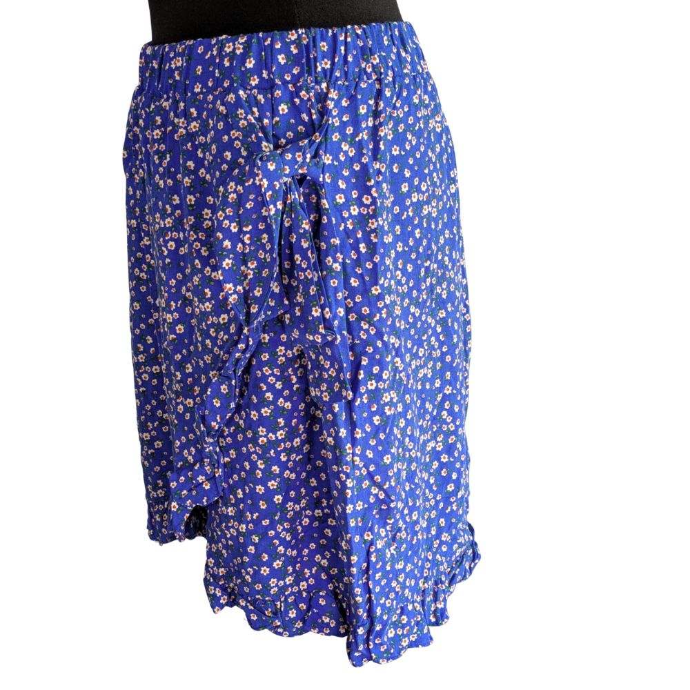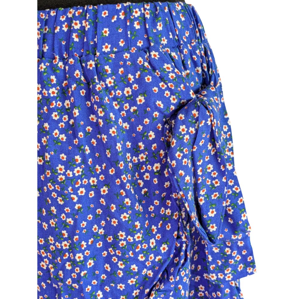 Zaletą nie do przecenienia jest materiał – spódnicospodenki uszyto w 100% z wiskozy. Tkanina ta jest niezwykle miękka, lejąca i doskonale przepuszcza powietrze, co czyni ten element garderoby niezastąpionym podczas upalnych dni. Drobny, radosny wzór ditsy floral (kwiaty) na niebieskim tle wspaniale wpisuje się w letnie trendy.