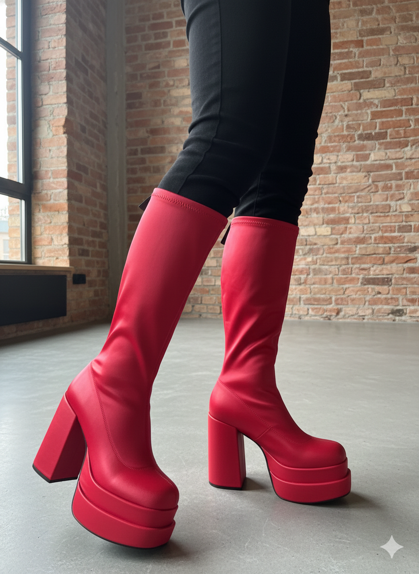 Kozaki marki Steve Madden w odcieniu intensywnej, krwistej czerwieni to propozycja dla kobiet, które kochają drapieżny look i nie boją się być w centrum uwagi. Spektakularna platforma i wysoki słupek tworzą niesamowity efekt wow, optycznie wydłużając i wysmuklając nogi. Wykonane z innowacyjnego, elastycznego materiału typu stretch o satynowym połysku, idealnie przylegają do sylwetki, tworząc efekt nienagannej "drugiej skóry".