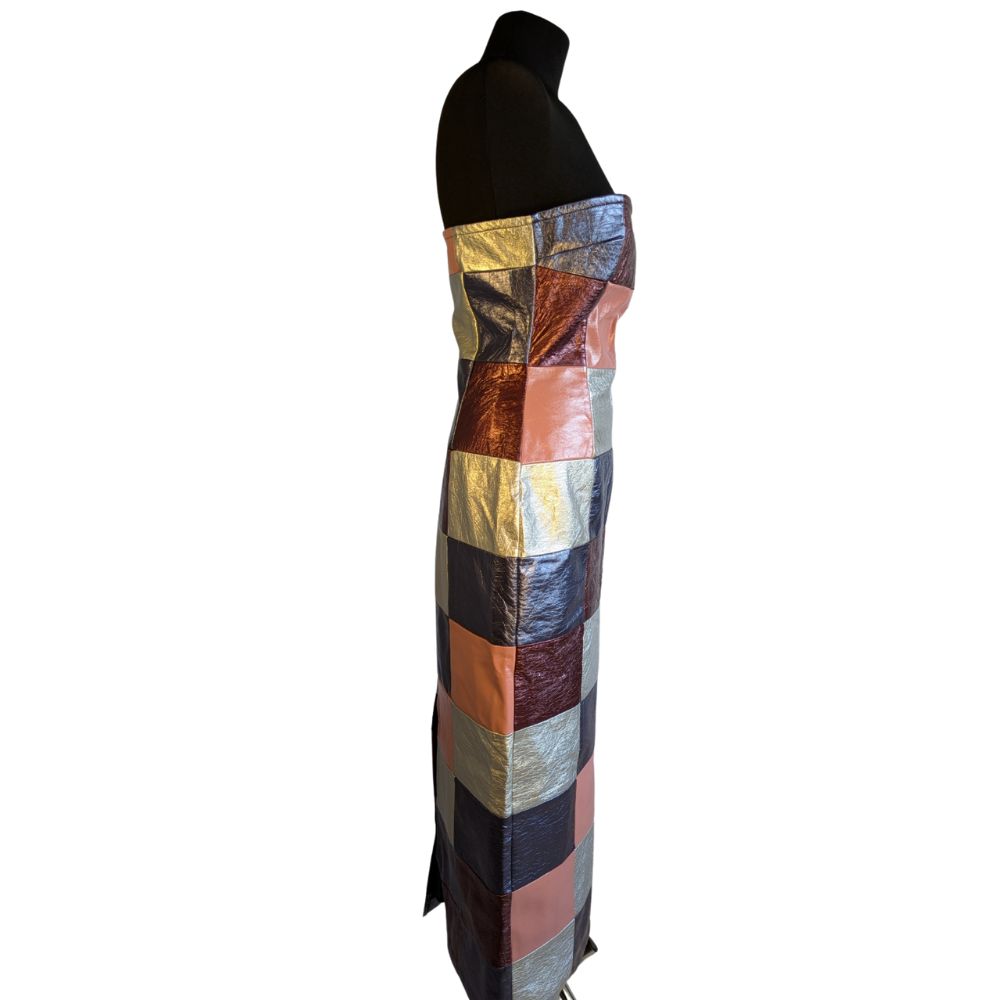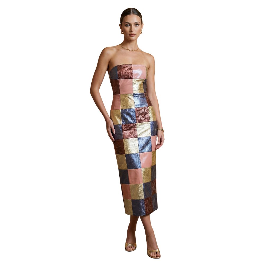 Annorlunda – Metaliczna Sukienka Midi Patchwork