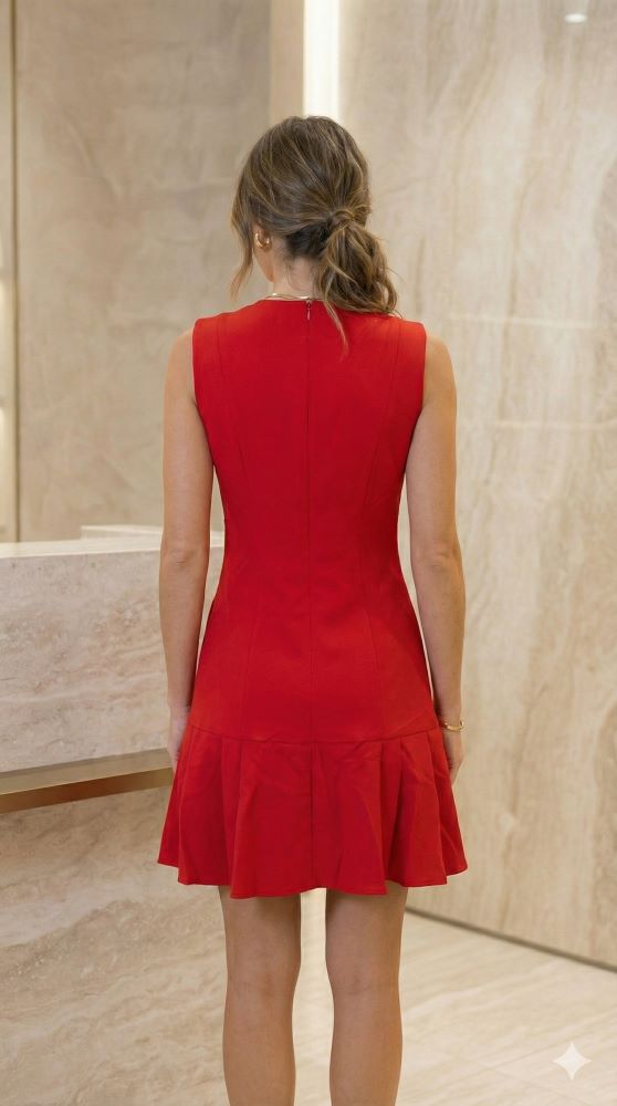 Poczuj moc koloru w wyjątkowej kreacji od marki Trendyol. Ta sukienka to perfekcyjne połączenie elegancji klasycznej marynarki z kobiecym, nowoczesnym sznytem. Głęboki odcień soczystej czerwieni sprawia, że stylizacja zachwyca bez zbędnych dodatków. Fason wyróżnia się dwurzędowymi, biżuteryjnymi złotymi guzikami oraz szeroką, plisowaną falbaną na dole, która przełamuje formalny charakter, nadając całości dynamiki i lekkości.