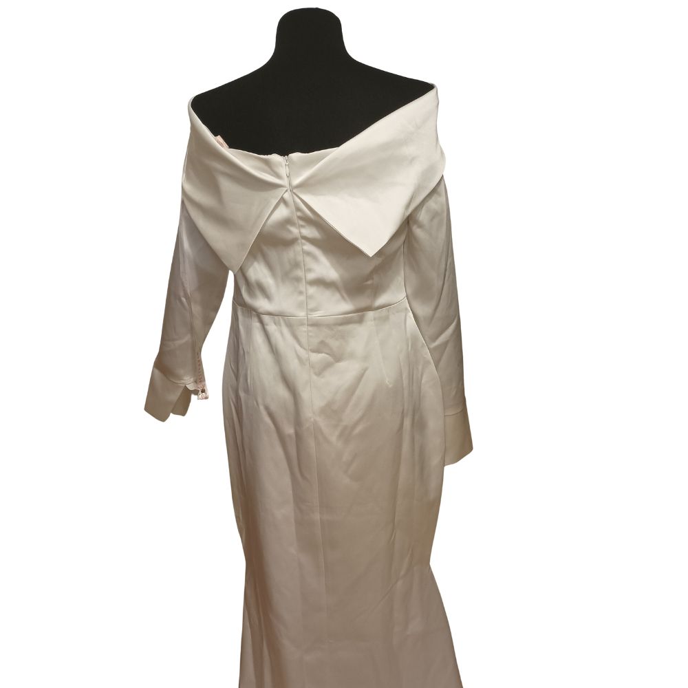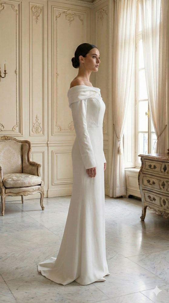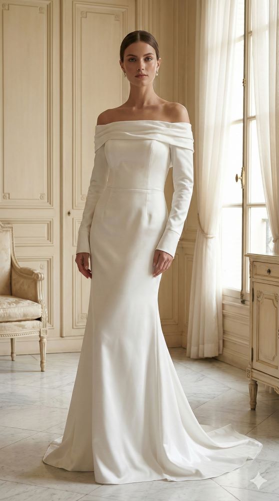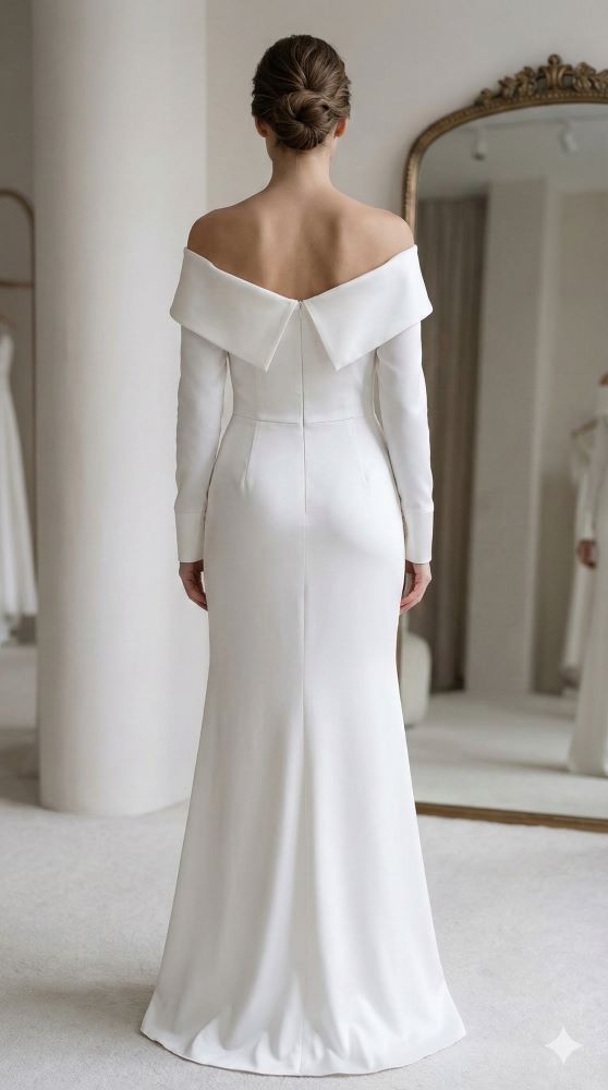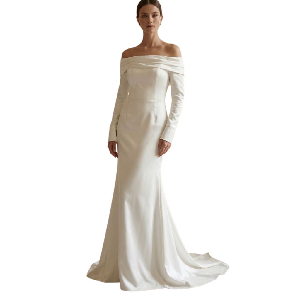 Poczuj się jak gwiazda wielkiego ekranu w kreacji od Betty & Sam. Ta suknia w odcieniu szlachetnej, śmietankowej bieli to kwintesencja minimalistycznego luksusu. Odkryte ramiona w stylu Carmen (hiszpanka) zmysłowo eksponują dekolt, a mięsista satynowa tkanina o matowym połysku dodaje całości dystyngowanego charakteru. To idealna propozycja na ślub cywilny, poprawiny lub ekskluzywną galę.