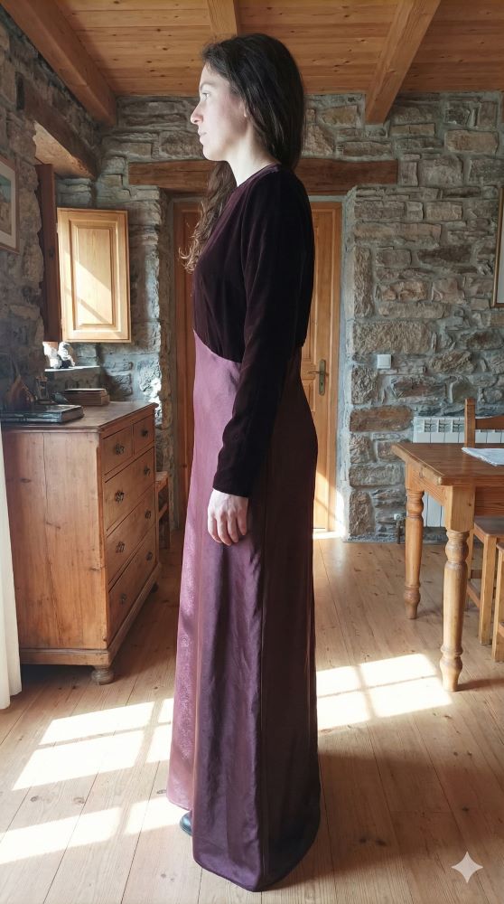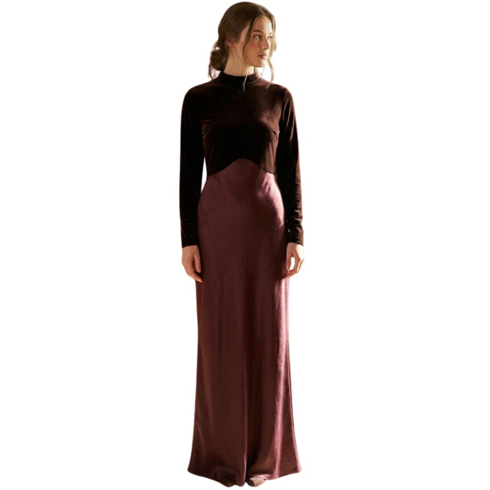 ASOS Design – Bordowa Suknia Welur & Satyna