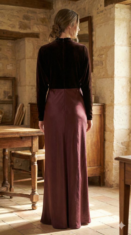 Odkryj wyrafinowaną elegancję w propozycji od ASOS Design. Ta zjawiskowa suknia maxi to mistrzowskie połączenie dwóch szlachetnych tekstur: głębokiego, matowego weluru (góra) oraz sensualnie lśniącej satyny (dół) w szlachetnym, winnym odcieniu. Model wyróżnia się niezwykle komfortowym krojem typu nietoperz (batwing). Luźniejsza góra zapewnia pełną swobodę ruchów i dyskretnie maskuje okolice ramion, podczas gdy satynowy dół subtelnie opływa sylwetkę, tworząc posągowy efekt.