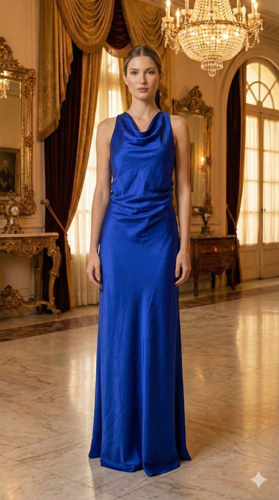 Zachwyć wszystkich posągową elegancją w sukni marki Trendyol. Ta zjawiskowa kreacja maxi w kolorze szlachetnego niebieskiego (Royal Blue) to definicja współczesnego luksusu. Wykonana z najwyższej jakości lejącej tkaniny o szlachetnym satynowym wykończeniu, która spektakularnie odbija światło przy każdym ruchu. Kluczowym elementem projektu jest kunsztowne, asymetryczne drapowanie w talii, które optycznie wysmukla sylwetkę i nadaje jej idealne proporcje klepsydry.