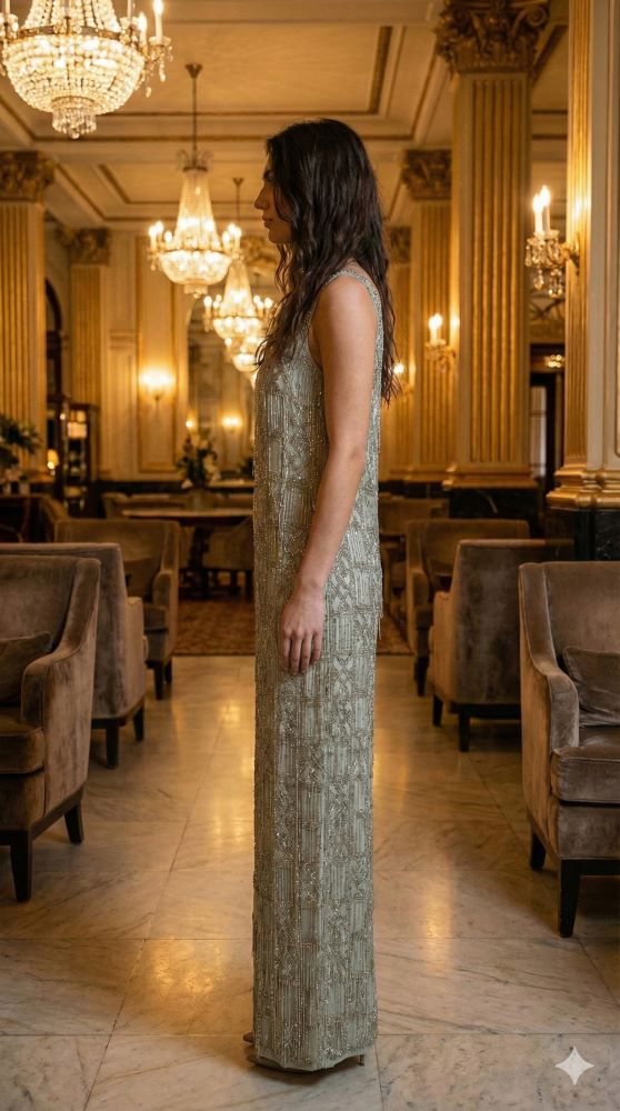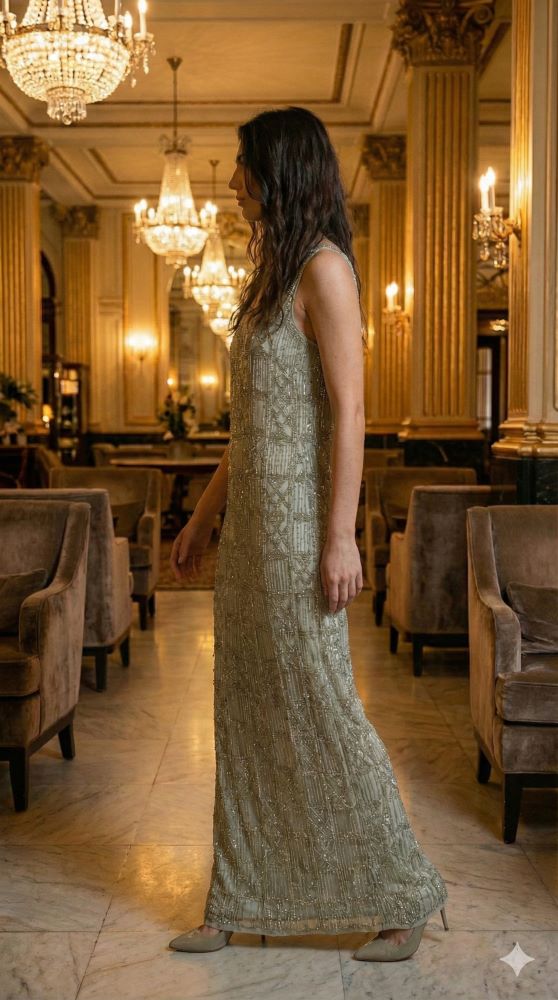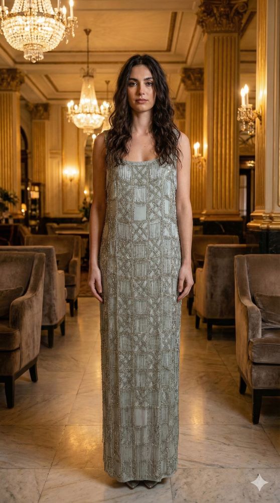Przedstawiamy perłę naszej kolekcji – luksusową suknię z linii ASOS Curve, która przenosi w świat stylu Great Gatsby i lat 20. Subtelny odcień szałwiowej zieleni stał się płótnem dla tysięcy ręcznie naszywanych koralików i cekinów. To kreacja, która żyje własnym życiem – kaskady koralikowych frędzli zjawiskowo pracują w ruchu, tworząc efekt płynnego srebra. Kolumnowy fason i szerokie ramiączka zapewniają maksymalny komfort, wydobywając to, co w sylwetce plus size najpiękniejsze.